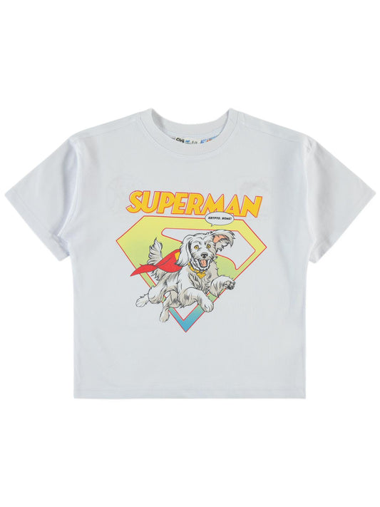 Süperman krypto baskılı 6-9 yaş tişört - beyaz