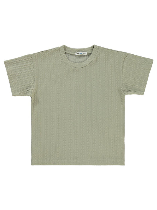 Civil boys kendinden desenli 6-9 yaş tişört - haki