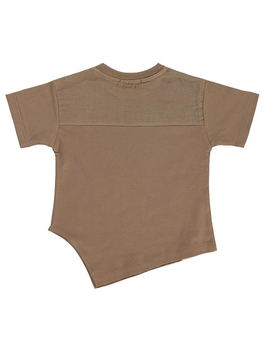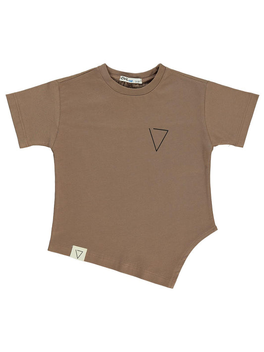 Civil boys victory baskılı asimetrik 6-9 yaş tişört - kahverengi