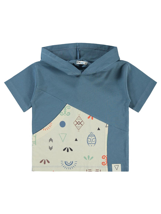 Civil boys parça garnili kapşonlu 2-5 yaş tişört - mavi