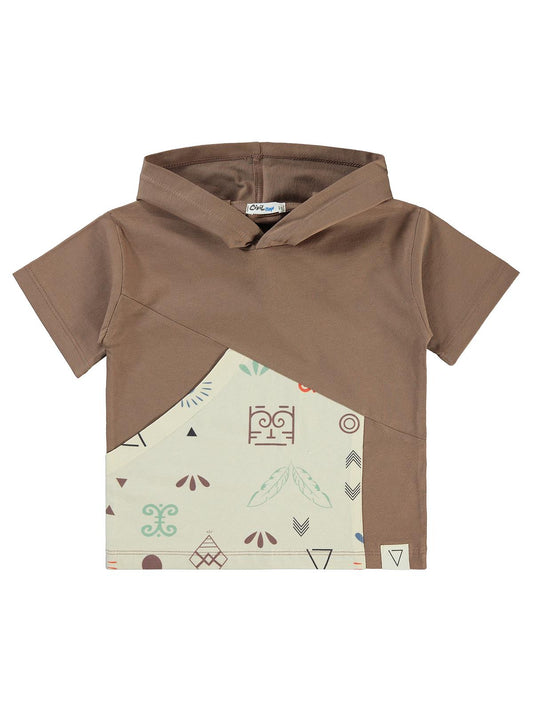 Civil boys parça garnili kapşonlu 2-5 yaş tişört - kahve