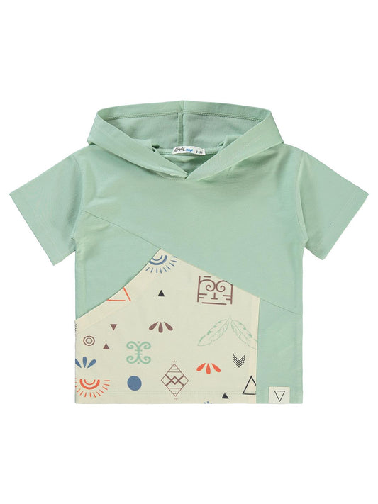 Civil boys parça garnili kapşonlu 2-5 yaş tişört - yeşil