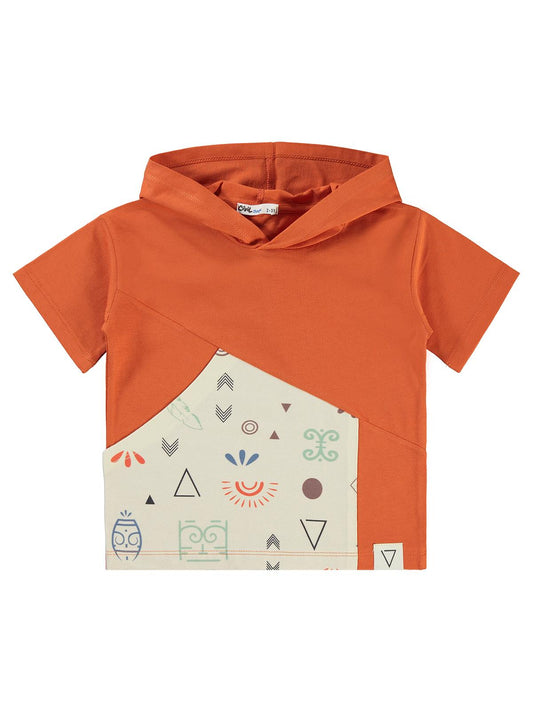 Civil boys parça garnili kapşonlu 2-5 yaş tişört - turuncu