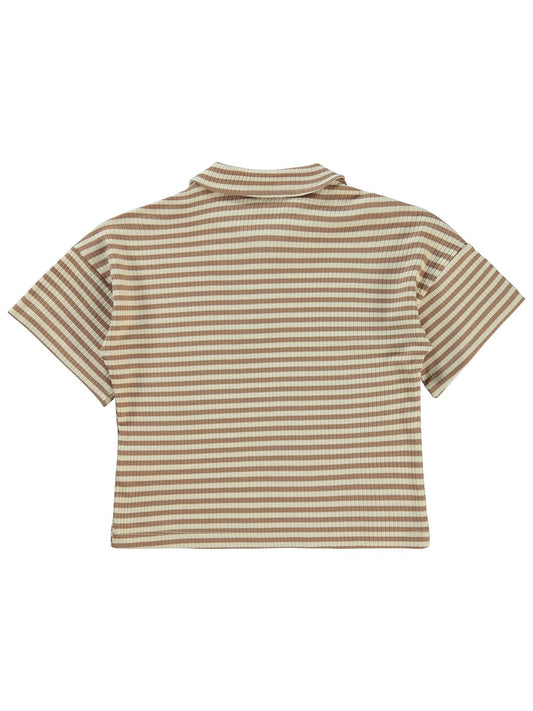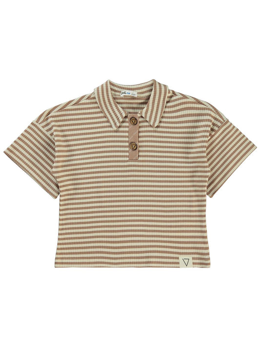 Civil boys çizgili yakalı 2-5 yaş tişört - kahverengi
