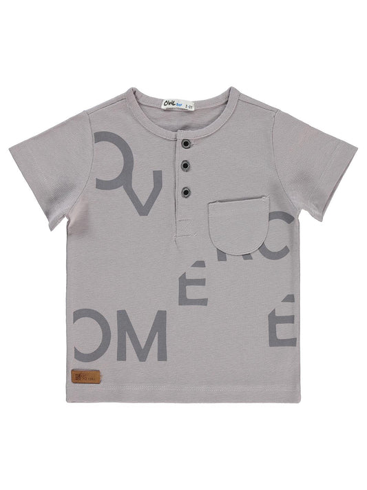 Civil boys yarım patlı yazı baskılı 2-5 yaş tişört - gri