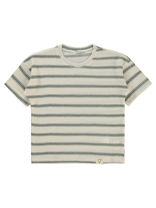 Civil boys çizgili 10-13 yaş tişört - haki