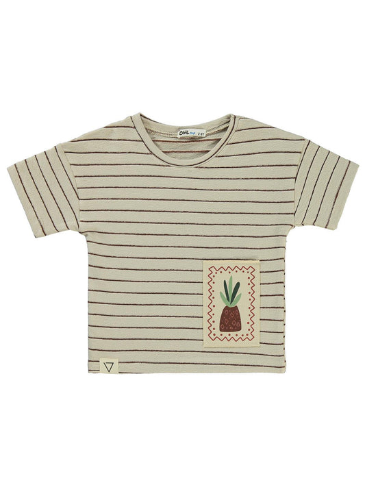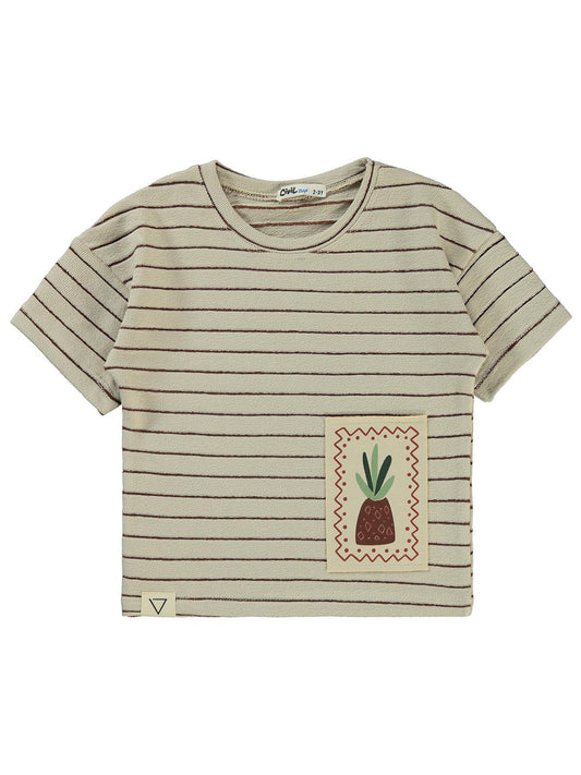 Civil boys çizgii ananas nakışlı 2-5 yaş tişört - bej