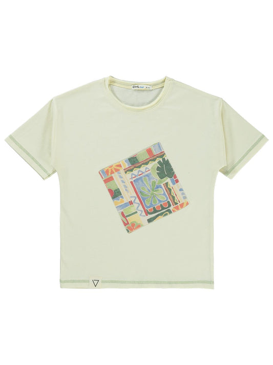 Civil boys desenli cepli 6-9 yaş tişört - ekru