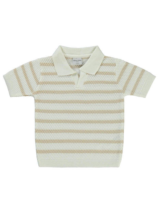 Pierre cardin çizgili tiriko 2-5 yaş tişört - kahverengi