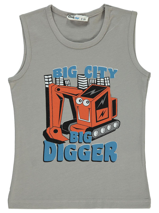 Civil boys bıg city dıgger baskılı 2-5 yaş tişört - gri