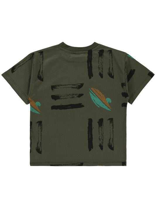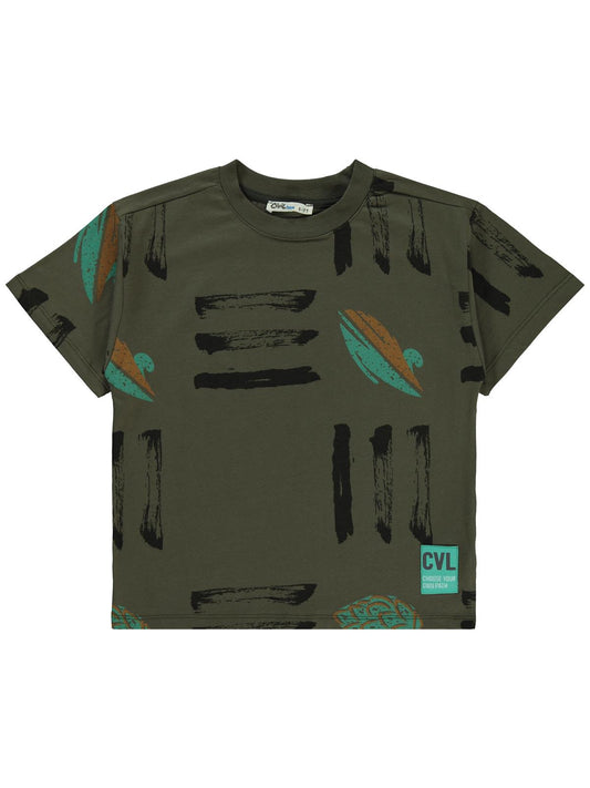 Civil boys üç çizgi emprime cvl etiketli 6-9 yaş tişört - haki