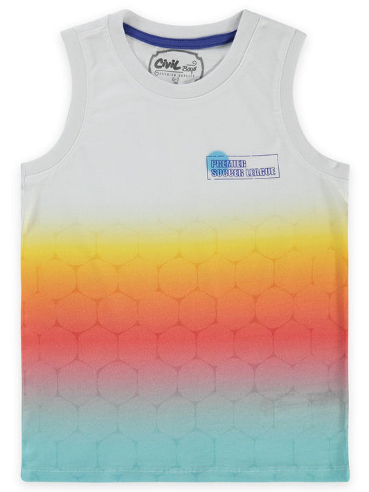 Civil boys renkli premier baskılı sıfır kol 6-9 yaş tişört - mavi