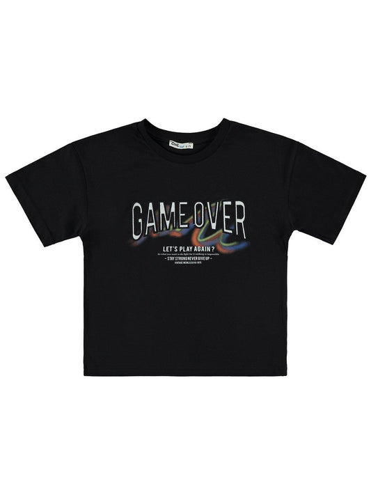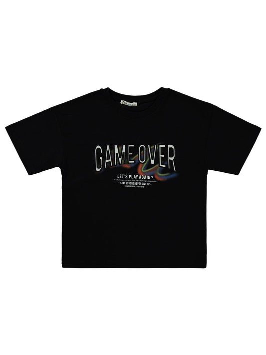 Civil boys game over baskılı 10-13 yaş tişört - siyah