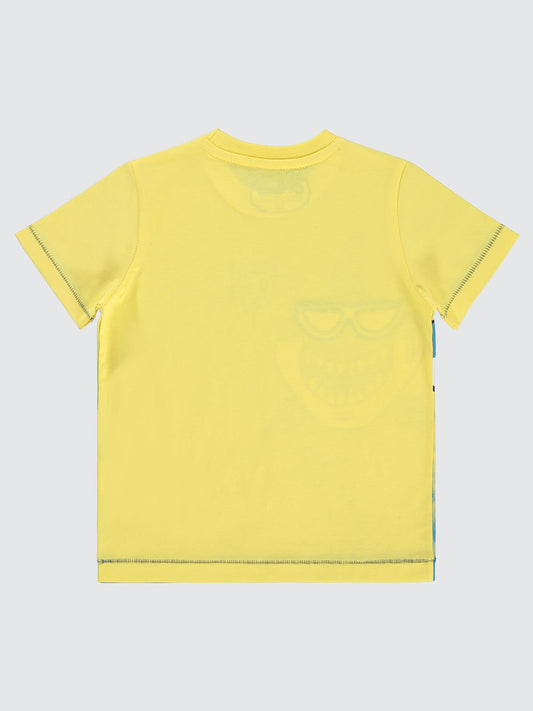 Civil boys köpek balığı baskılı gözlük nakışlı 2-5 yaş tişört - sarı