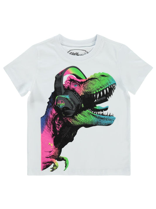 Civil boys kulaklıklı dino baskılı 2-5 yaş tişört - beyaz