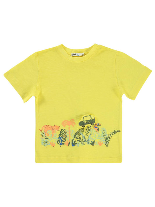 Civil boys arazi aracı kabartma baskılı 2-5 yaş tişört - sarı