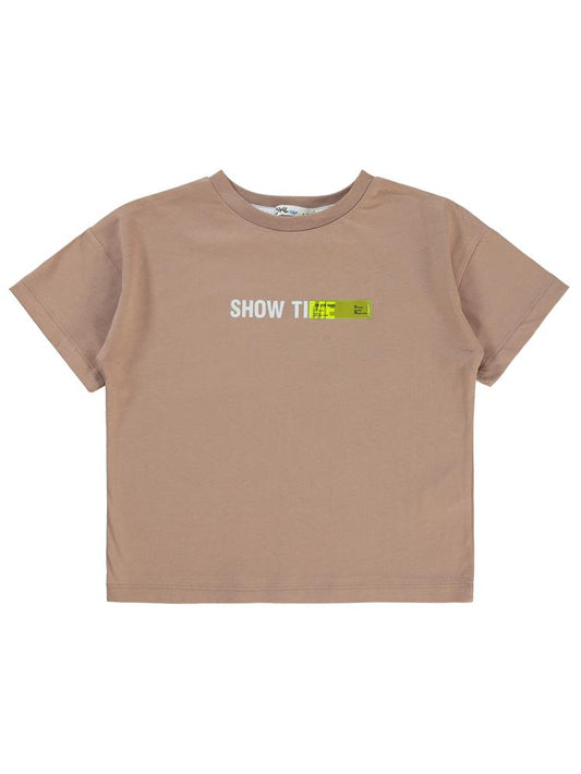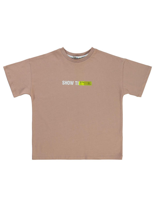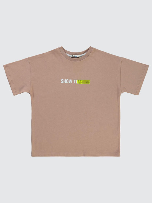 Civil boys show time baskılı 10-13 yaş tişört - kahve