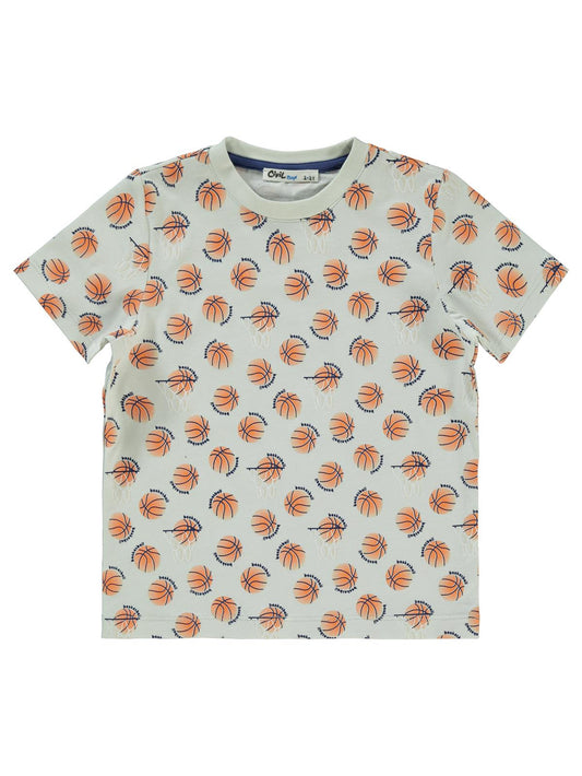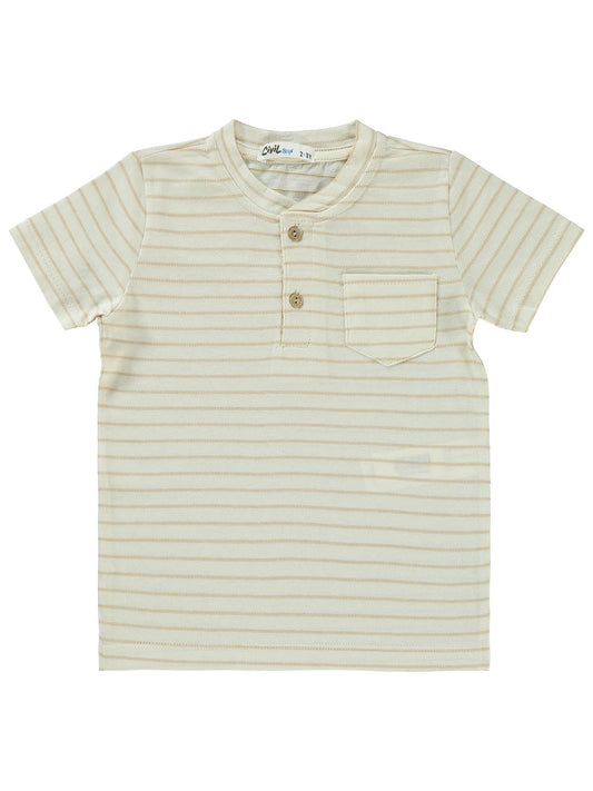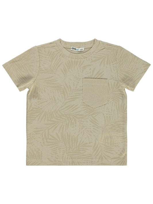 Civil boys kendinden palmiye desenli cepli 2-5 yaş tişört - bej