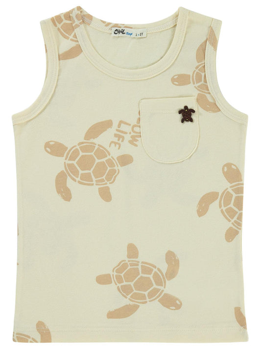 Civil boys kaplumbağa baskılı sıfır kol 2-5 yaş tişört - fil dişi