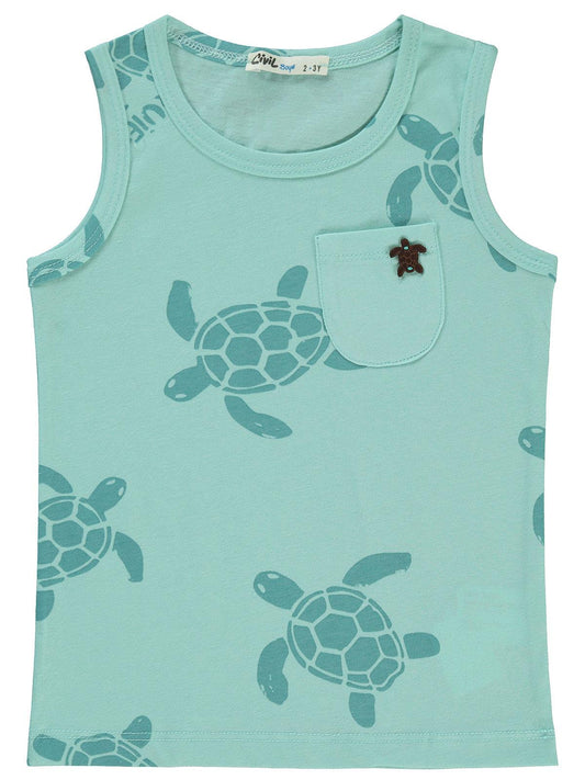 Civil boys kaplumbağa baskılı sıfır kol 2-5 yaş tişört - mavi