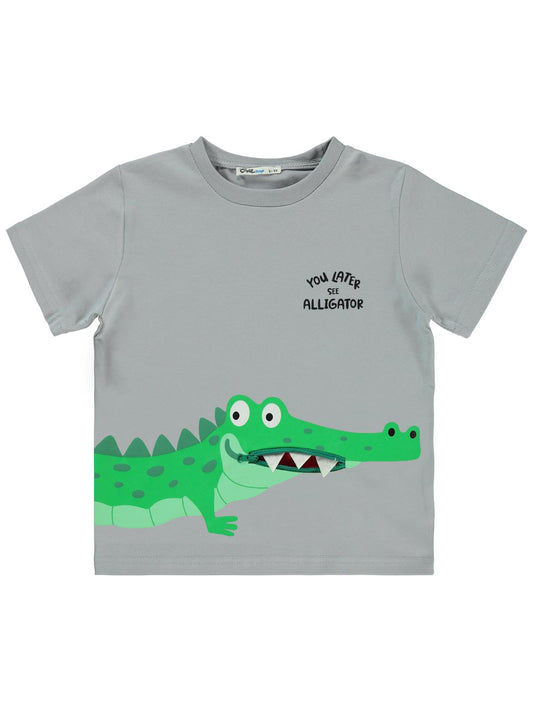 Civil boys timsah baskılı 2-5 yaş tişört - gri