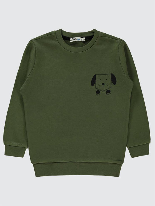 Civil boys köpek baskılı 2-5 yaş sweatshirt - haki