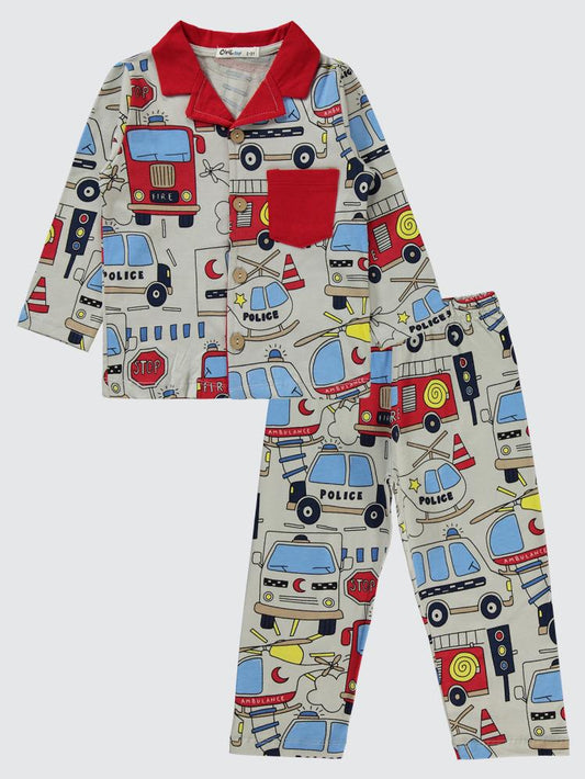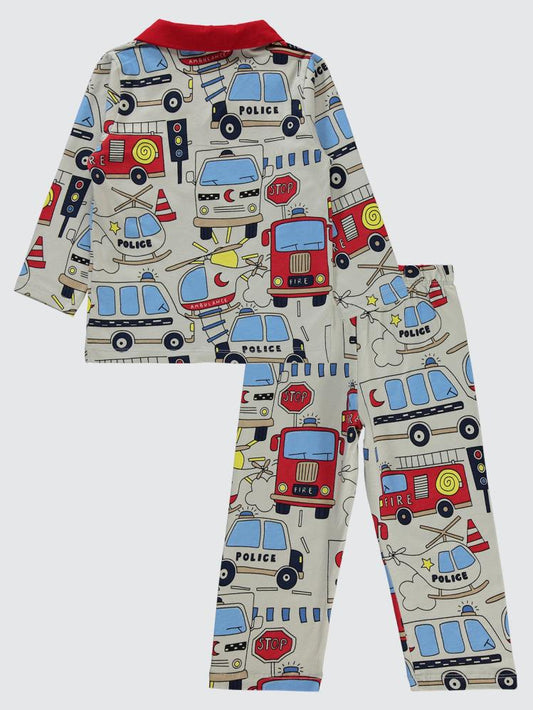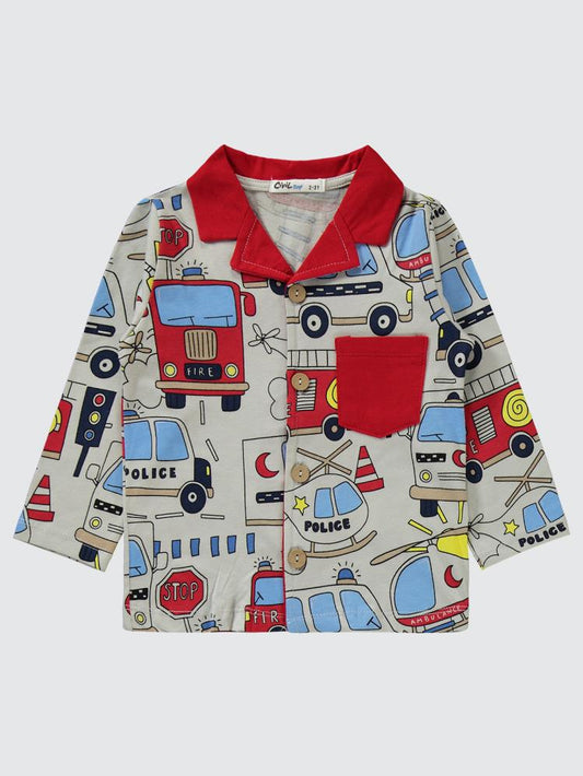 Civil boys araçlar baskılı yakalı 2-5 yaş pijama takımı - kırmızı