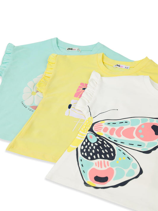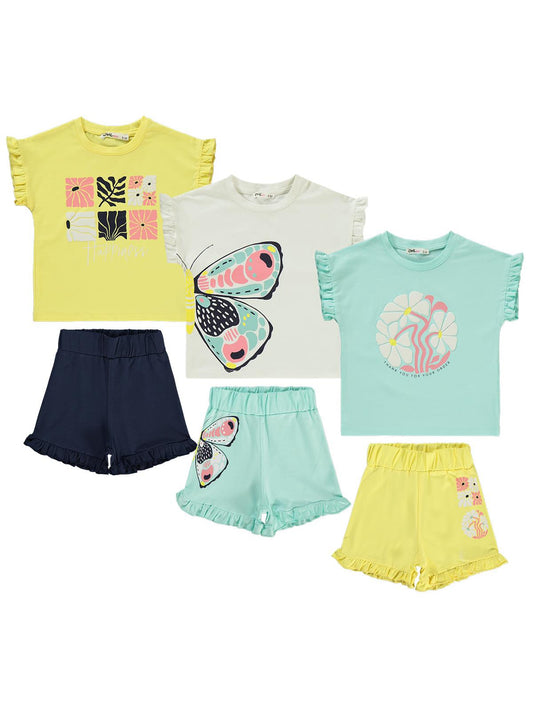 Civil girls kelebek baskılı kısa kol 3'lü set 2'li 2-5 yaş takım