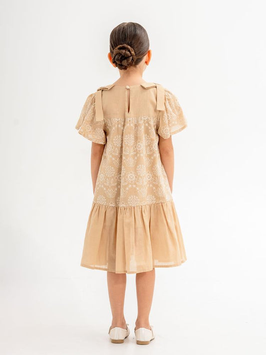 Cocoland çiçek desenli 6-9 yaş elbise - bej