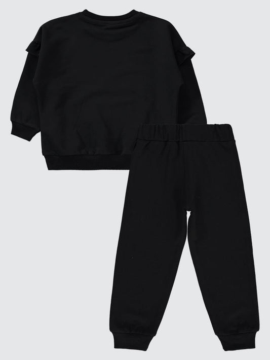 Civil girls kolu fırfırlı 2-5 yaş eşofman takımı - siyah