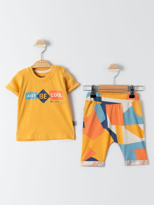 Bizizo summer baskılı bisiklet yaka 2-5 yaş takım - sarı