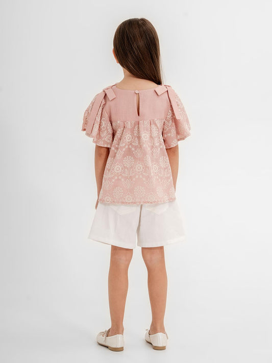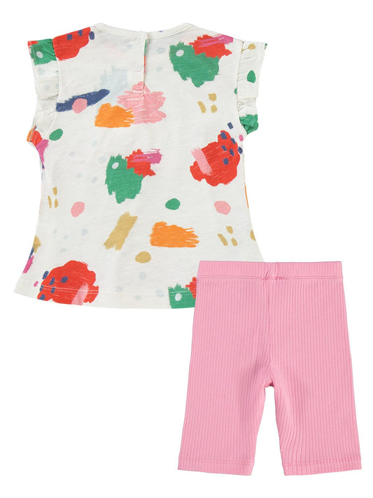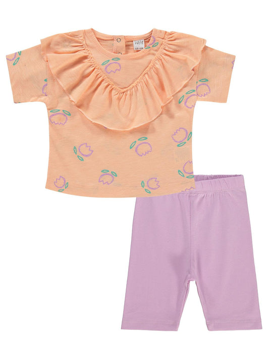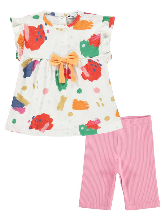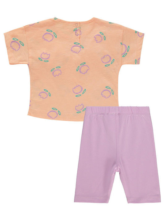 Cocoland çiçek desenli şortlu 2-5 yaş takım - pudra