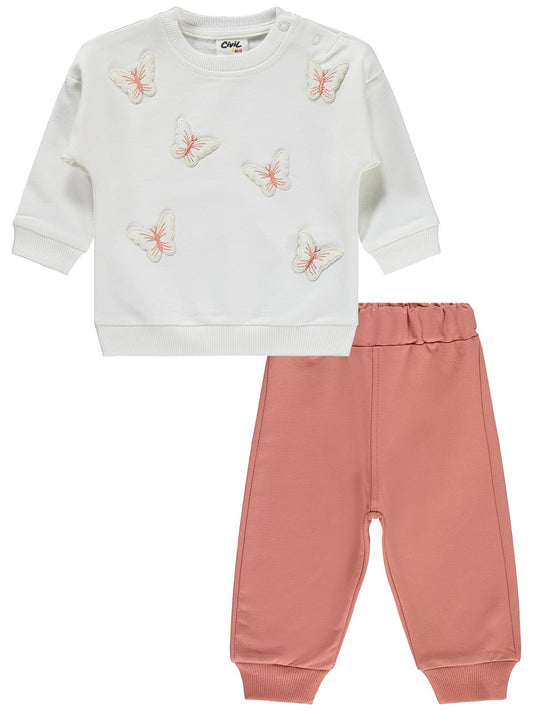 Civil baby kelebek nakışlı 6-18 ay takım - ekru