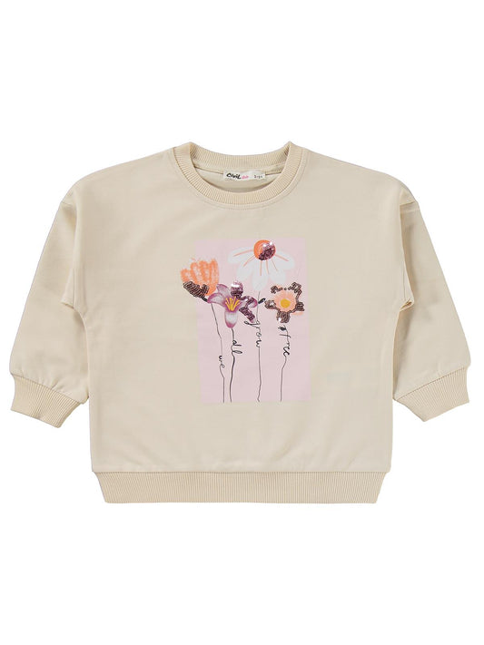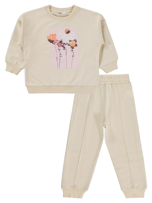 Civil girls çiçek baskılı 2-5 yaş eşofman takımı - bej