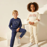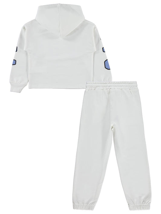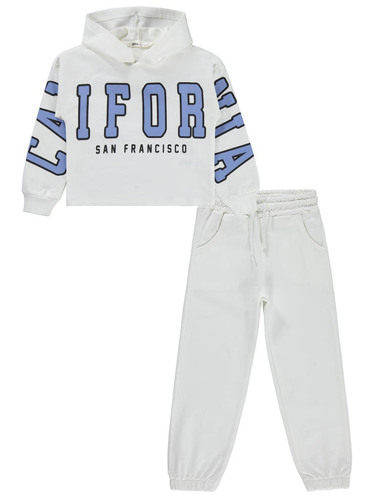Civil girls calıfornıa nakışlı kapşonlu 6-9 yaş eşofman takımı - ekru