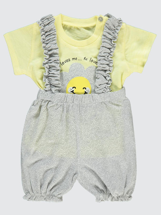Kumru askılı gülen yüz çiçek 6-18 ay takım - sarı