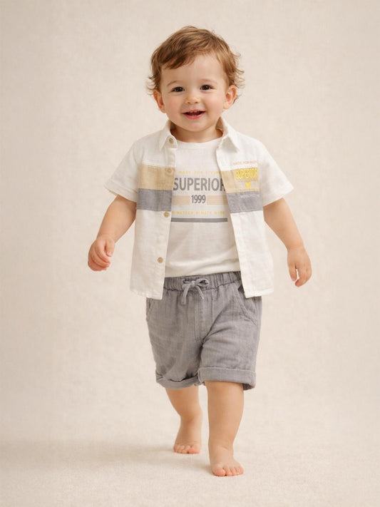 Concept müslin gömlekli şortlu 3'lü 6-18 ay takım - gri