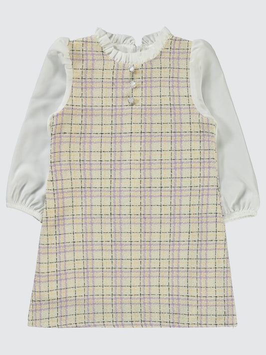Civil girls yakası fırfırlı 6-9 yaş elbise - bej