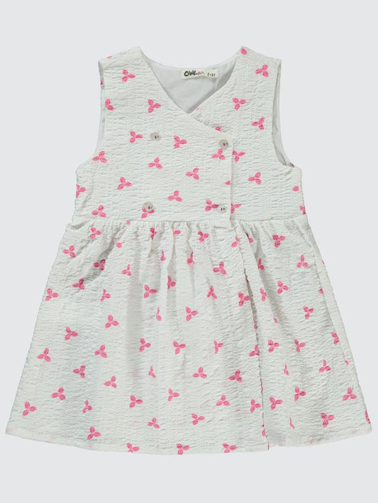 Civil girls roba desenli 2-5 yaş elbise - ekru
