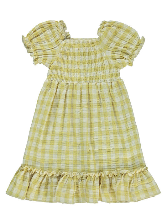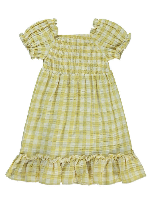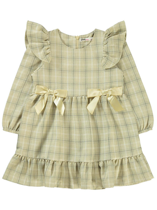 Civil girls ekose desenli 2-5 yaş elbise - sarı