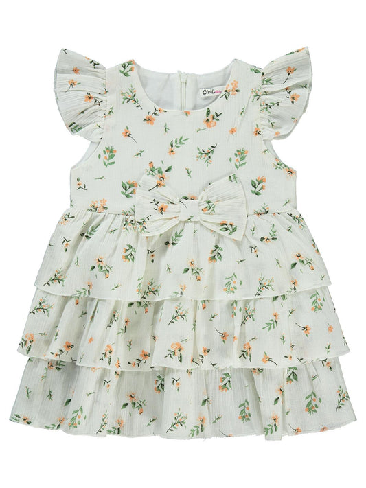 Civil girls çiçek baskılı 2-5 yaş elbise - ekru