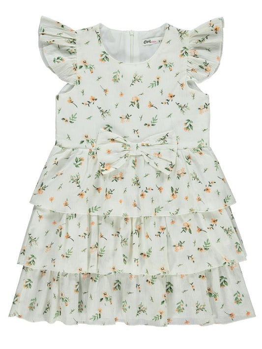 Civil girls çiçek baskılı 6-9 yaş elbise - ekru