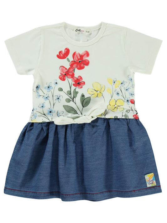 Civil girls renkli çiçek baskılı 2-5 yaş elbise - ekru