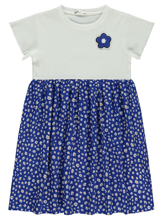 Civil girls küçük papatya desenli 6-9 yaş elbise - mavi