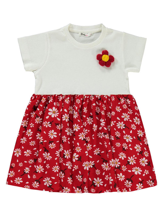 Civil girls büyük papatya desenli 2-5 yaş elbise - kırmızı
