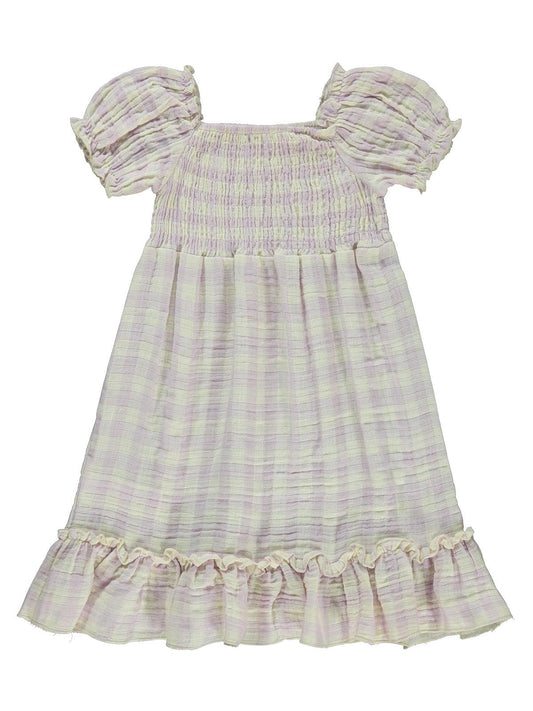 Civil girls ekose desenli 2-5 yaş elbise - lila