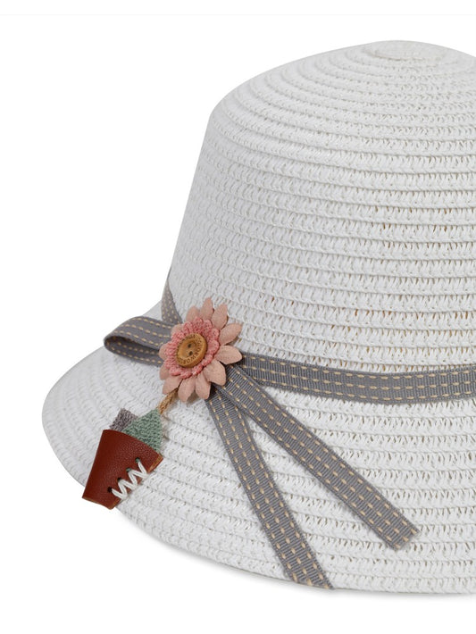 6-9 yaş kız çocuk hasır şapka - beyaz