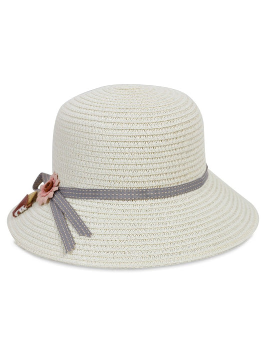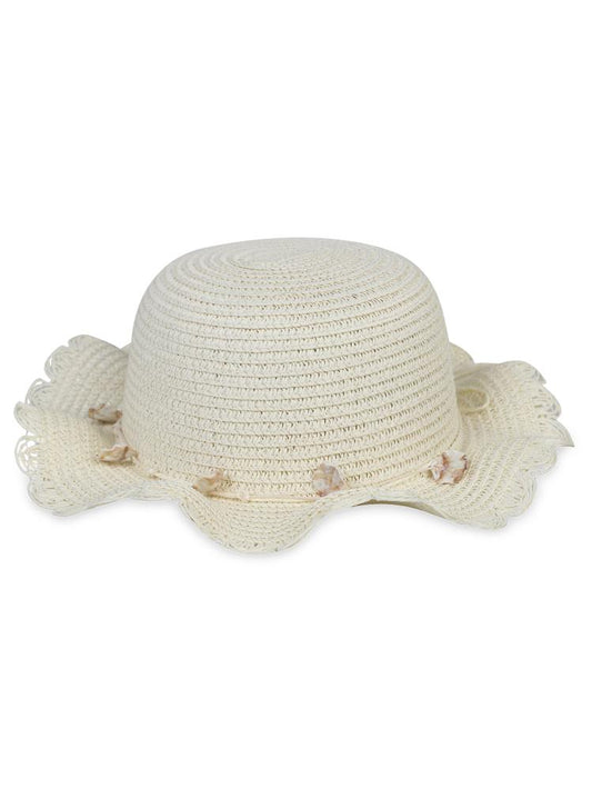 Taşlı aksesuar 4-8 yaş çocuk kız hasır şapka - beyaz