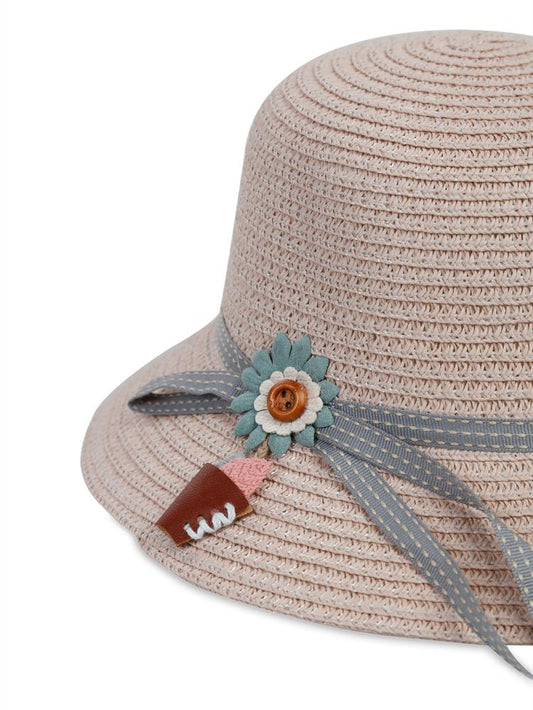 Basi̇c 6-9 yaş kiz hasir şapka - bej