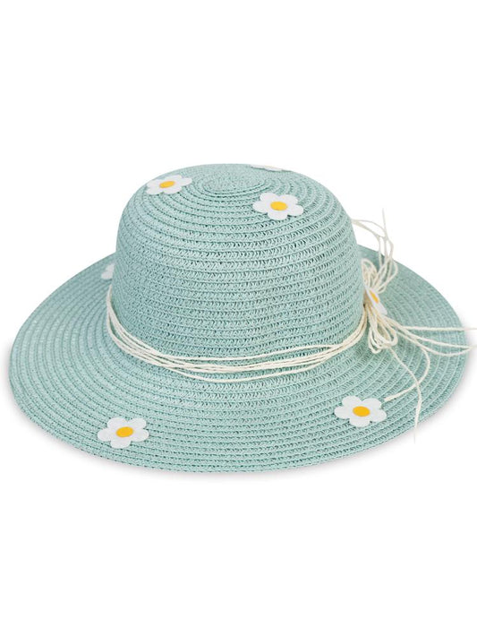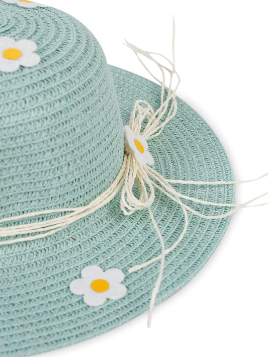 Papatya 6-9 yaş kiz hasir şapka - yeşil